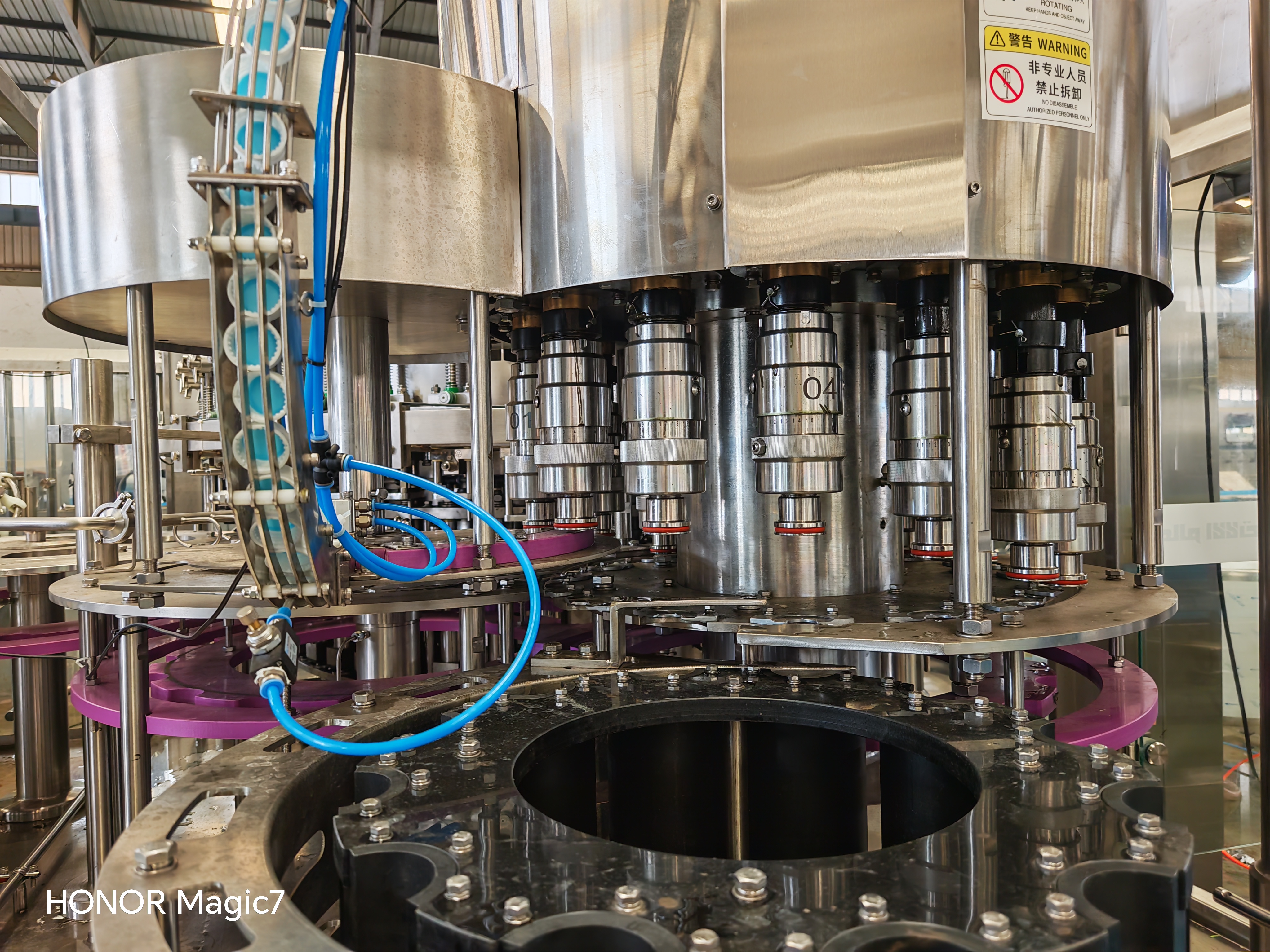 含氣飲料灌裝生產(chǎn)線配有CO2壓力控制精確,液位控制穩(wěn)定;設(shè)有多處卡瓶、缺瓶、缺蓋、過(guò)載等保護(hù)報(bào)警裝置,確保出品質(zhì)量。