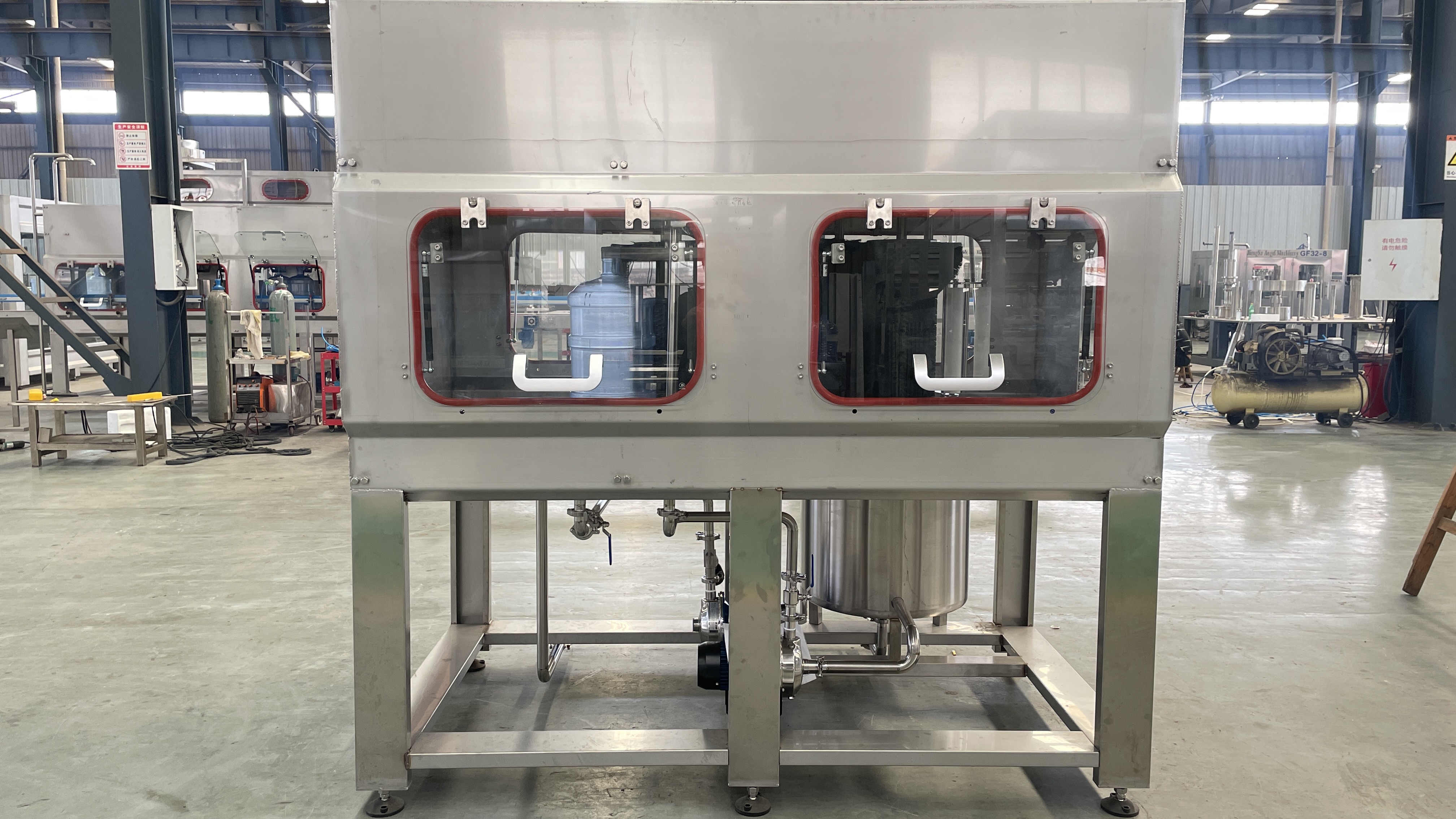 該設(shè)備集自動拔蓋、自動外刷桶、自動上瓶機(jī)構(gòu)、自動洗瓶消毒、自動灌裝、自動套蓋、自動壓蓋和燈檢、熱縮膜、提桶套袋、成品送出為一體,使用的原材料符合食品行業(yè)和其他行業(yè)要求。該設(shè)備采用AC380V電源.
