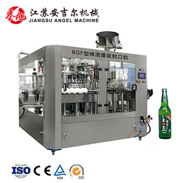 啤酒灌裝機采用先進的“二次真空高壓氣泡注射”技術(shù),降低氧含量,改善啤酒口感;具有精確的壓力控制和自動缺陷瓶檢測功能,啤酒灌裝機的最終產(chǎn)品始終實現(xiàn)完美的質(zhì)量。料或食品級工程塑料,符合國家食品衛(wèi)生標準 。 出瓶撥輪瓶底托板采用螺旋下降方式,變換瓶型無須調(diào)整出瓶輸